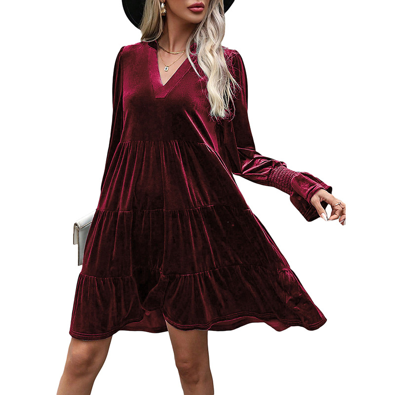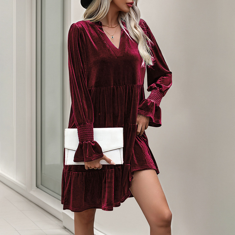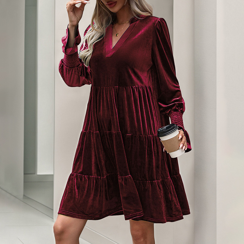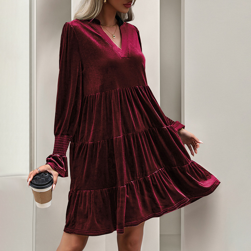 Be the first to review “Long Sleeve Spliced Dress Evening Dress Velvet Dress”