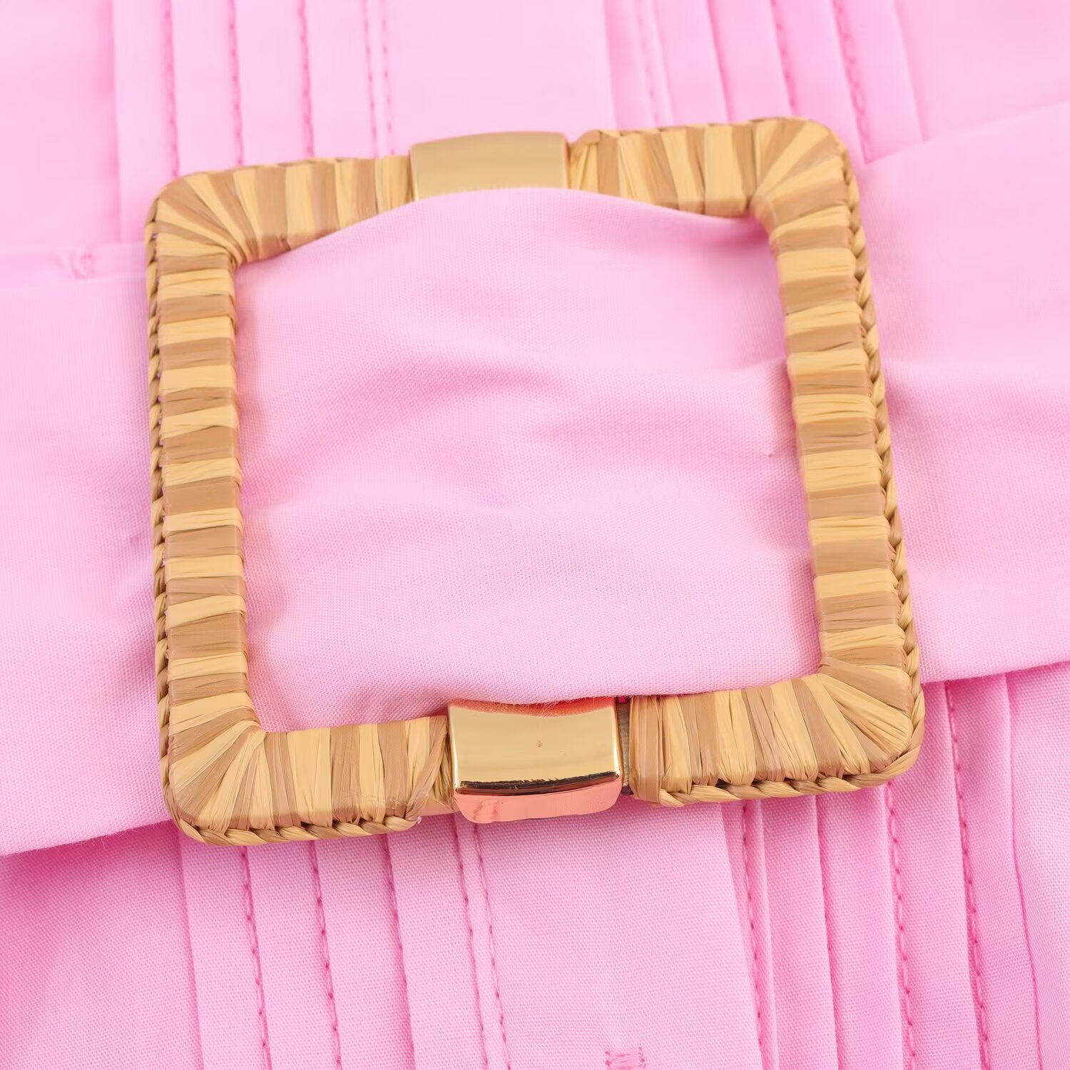 Women’s Fashion Dress with Belt, Poplin Midi Dress